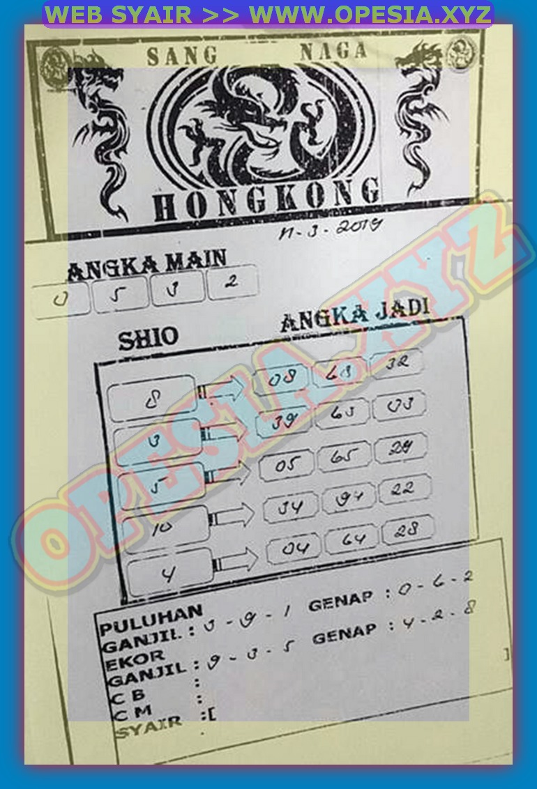 Syair Hongkong Senin 11 Maret 2019 Kode Syair SGP HK SD Motesia